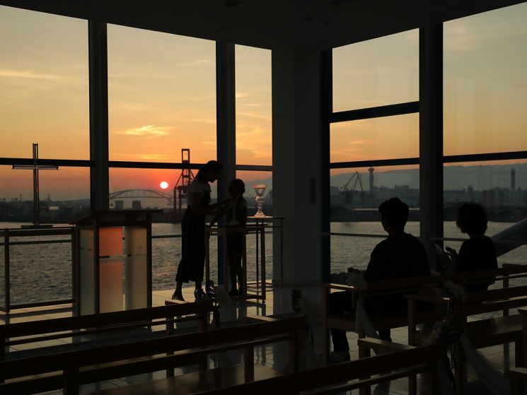 ご宿泊者でない方でも、 ワンドリンク制(ソフトドリンクのフリードリンク 350円)で 当館5階のチャペルから、夕陽を見ていただけます。