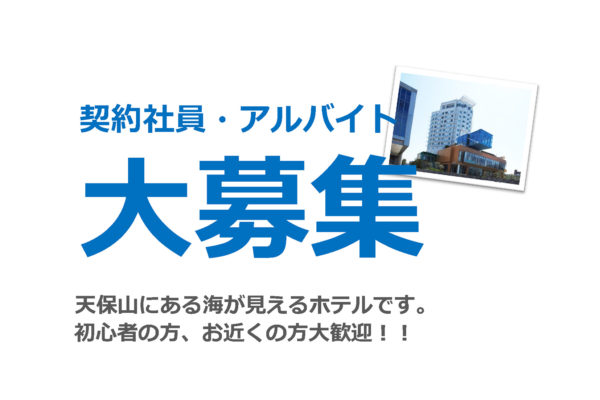 契約社員・アルバイト 大募集 天保山にある海が見えるホテルです。 初心者の方、お近くの方大歓迎!! 応募資格 18歳以上年齢不問 (高校生不可、中高年も活躍中) 業務内容 フロントスタッフ(フロント業務・電話応対・事務一..